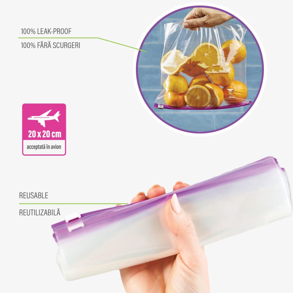 Practice și sigure, sunt ideale pentru depozitarea alimentelor sau a obiectelor mici și pot fi folosite chiar și în călătorii, fiind acceptate la transportul aerian.