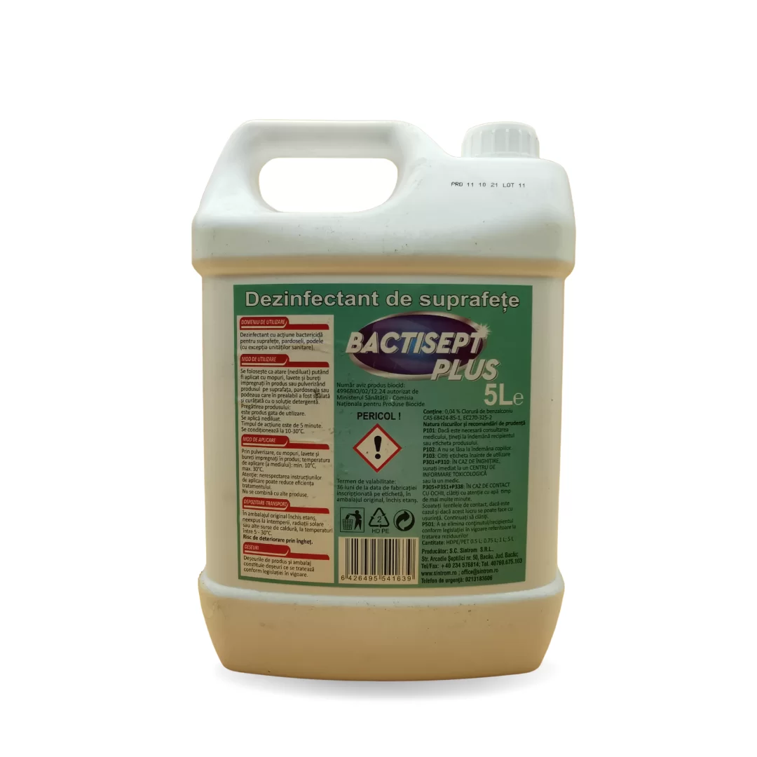 Bactisept Plus este o soluție dezinfectantă gata de utilizare, destinată curățării și dezinfectării suprafețelor industriale, casnice și profesionale, având la bază clorura de benzalconiu.
