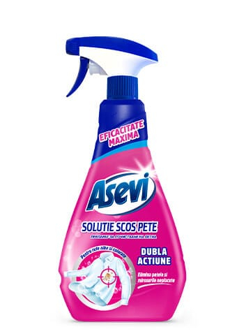 Soluția scos pete Asevi este un produs pentru prespălare, pe bază de enzime, creat pentru eliminarea petelor dificile și a mirosurilor neplăcute din rufe.