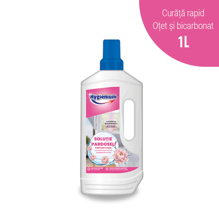 Soluția pentru pardoseli Hygienium cu bicarbonat și oțet, parfum floral 1L este un produs eficient și delicat, conceput pentru curățarea zilnică a tuturor tipurilor de pardoseli. Formula sa inovatoare combină puterea naturală a bicarbonatului de sodiu cu proprietățile degresante ale oțetului, oferind o curățare profundă fără a deteriora suprafețele.