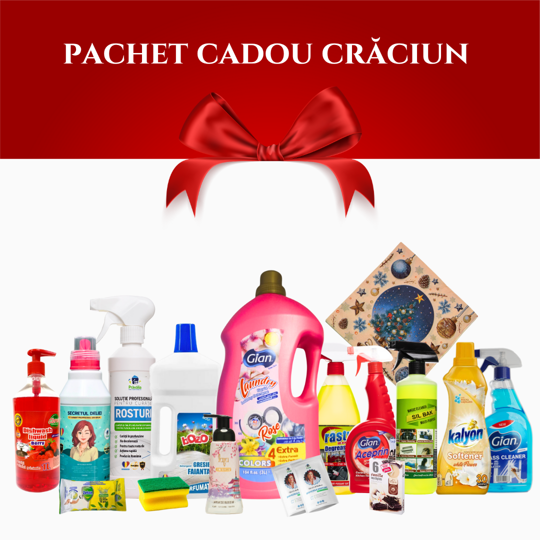 Acest pachet conține produse esențiale pentru casă, detergenți profesionali, soluții eficiente și articole parfumate — o combinație perfectă pentru a oferi un cadou care chiar este folosit și apreciat.